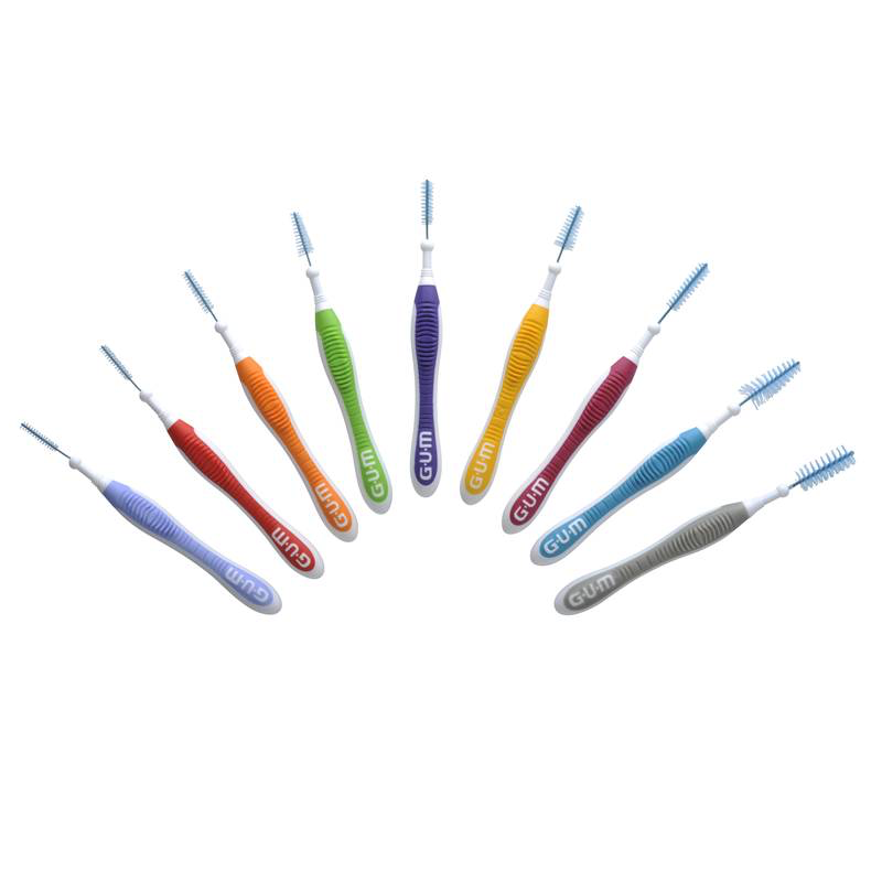 - Una gama completa de 8 cepillos interdentales, desde el más delgado al más grueso.