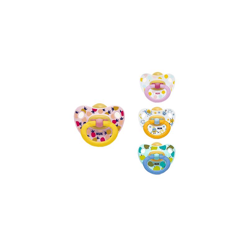 Los chupetes son los amigos inseparables de los bebés. Les ayudan a relajarse, acompañan sus movimientos y estimulan el desarrollo de su cavidad oral, paladar, labios, lengua y mandíbula. Gracias a su composición con látex, Nukete T2 látex ofrece la resistencia que tu bebé necesita en la época en la que le salen sus primeros dientecitos y no paran de morder. Cuentan con el sistema anticólico Air System, que previene que los pequeños se traguen el aire. Con diferentes diseños y colores, son todos ideales para acompañar a tu bebé. ¡Seguro que a tu bebé le encanta su nuevo chupete! La forma NUK y el concepto de diferentes tallas ayuda a promover el desarrollo saludable del paladar y de la cavidad oral.
